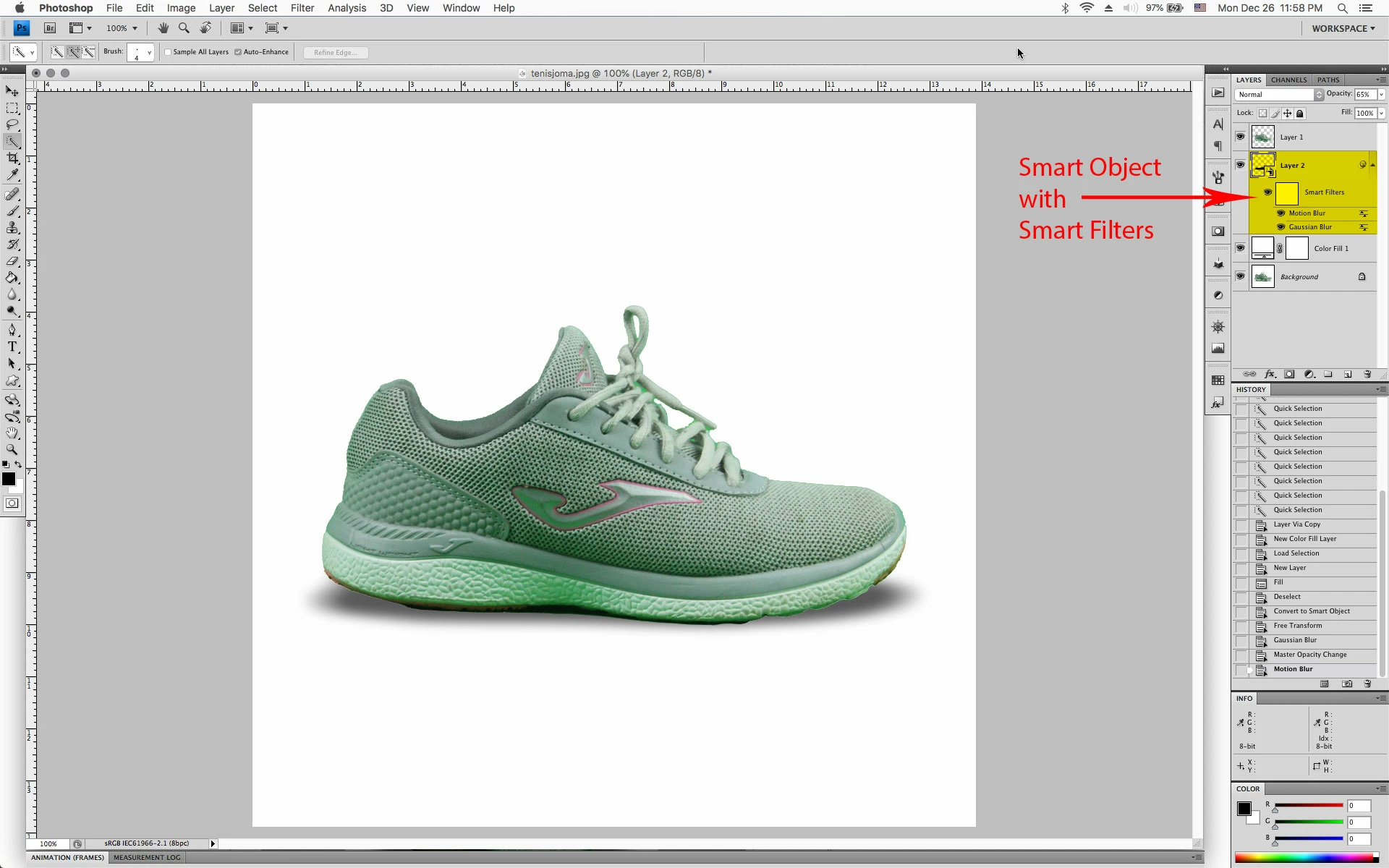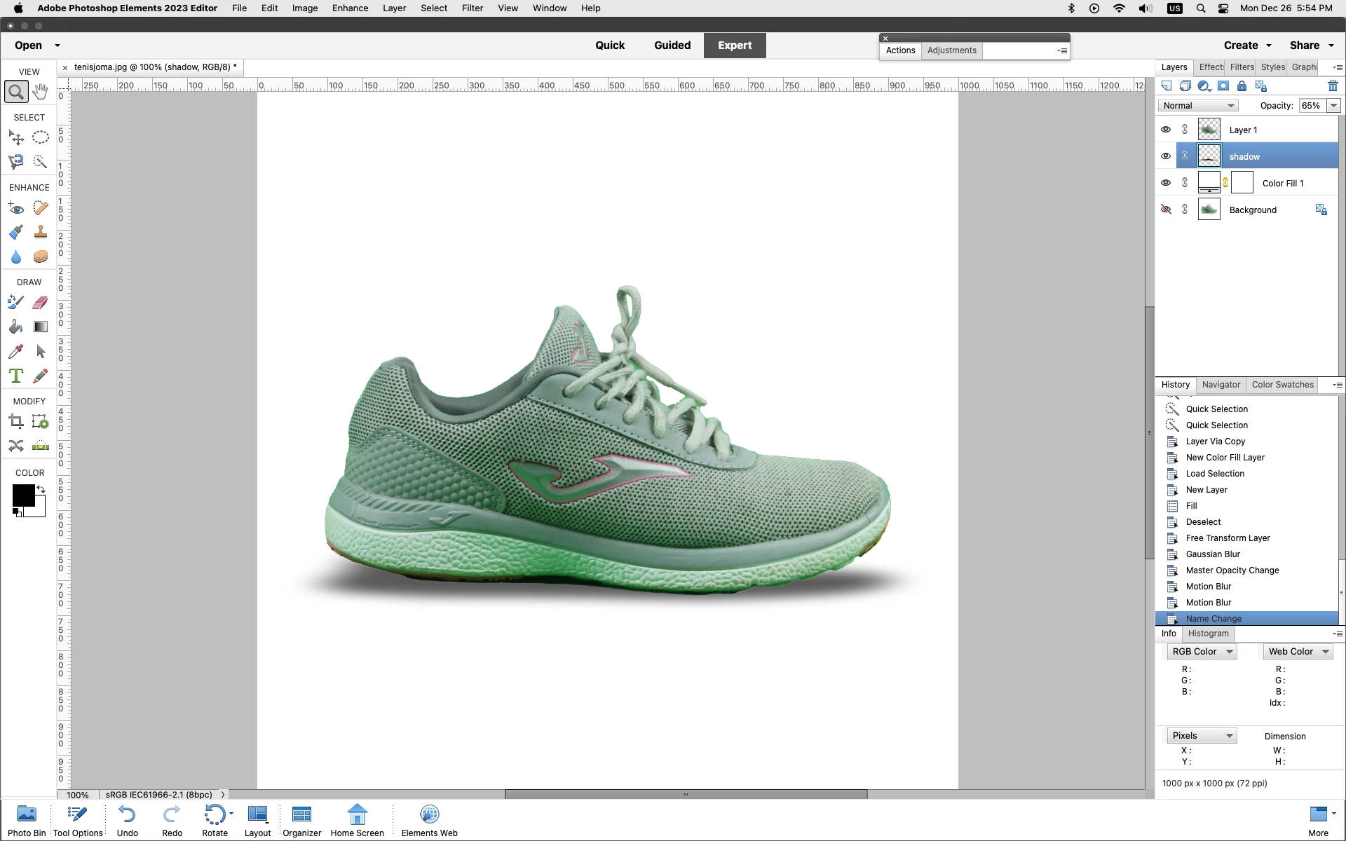 hola tengo un zapato al que le he añadido una sombra. Ahora quiero difuminarla, pero aplico el filtro de desenfoque gausiano y obtengo esto: