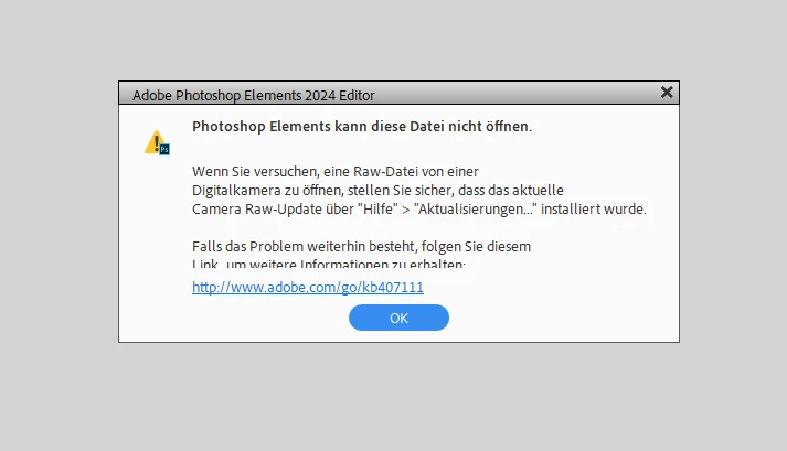 Raw Dateien werden von Photoshop Elements 2024 nicht mehr erkannt