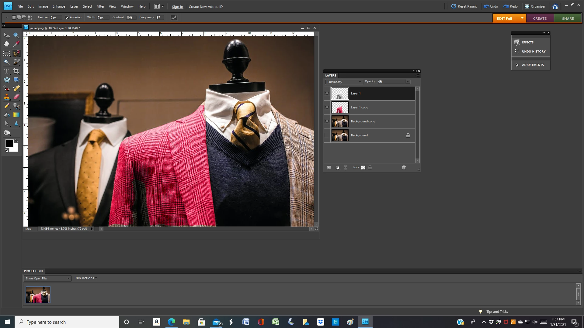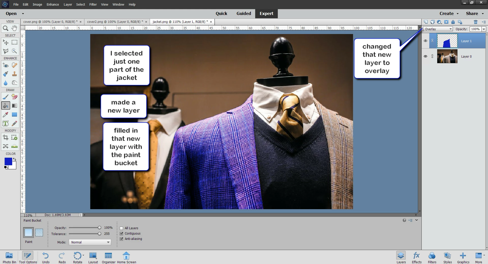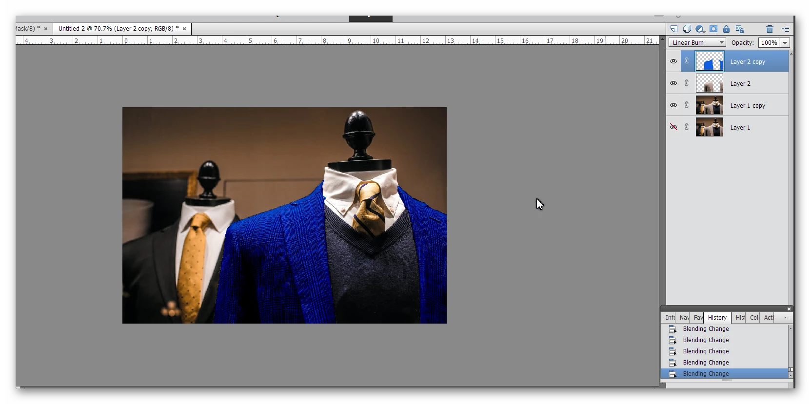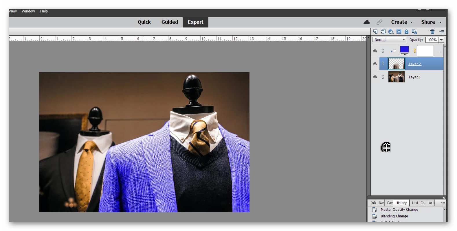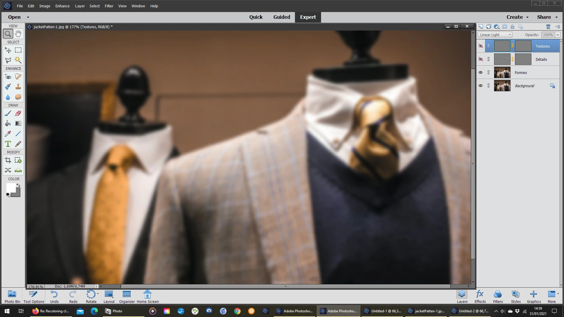 In the image below (which I got off of pexels) is it possible to change the jacket to a solid color, lets call it blue, and maintain the pattern / texutre of the jacket material?