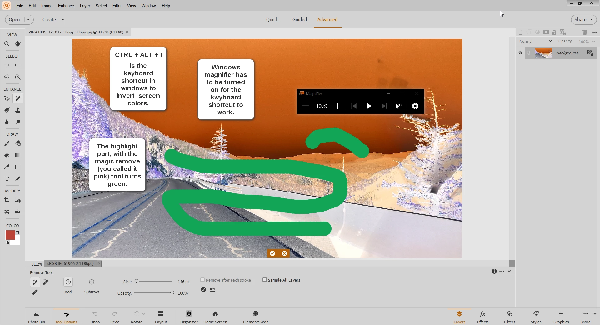 I cannot really see the pink field created by the Object Removal brush since it is pink. I would like it to be a non-red shade. Blue would be great as would purple.