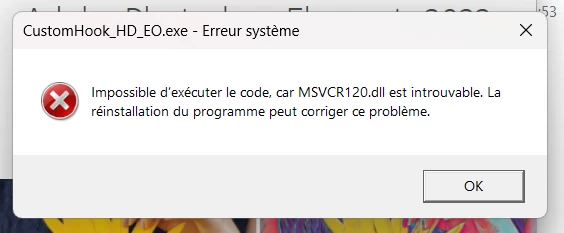 Réinstallation de PhotoShop Elements 2022 [Error: MSVCR120.dll]