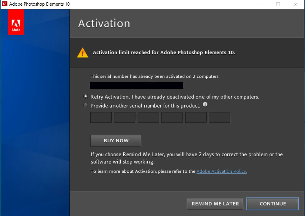 Over the years I have installed it on 2 different computers. The first one crashed years ago and just recently the second one crashed. When I got a new computer I tried to install it but get the message that in order to install on another computer I must first disable it on one of the two computers I already have it on. (screen shot attached) Since both sytems are dead, I am can not disable it on either of them. Is there a way to bypass this and install Elements on my new system?