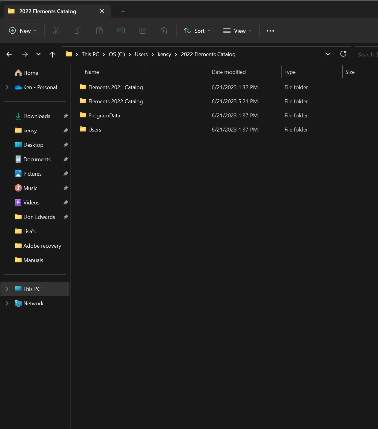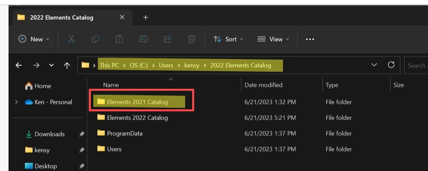 Meanwhile, back to the odd path of OS (C:)>Users>kensy>2022 Elements Catalog>Elements 2022 Catalog: