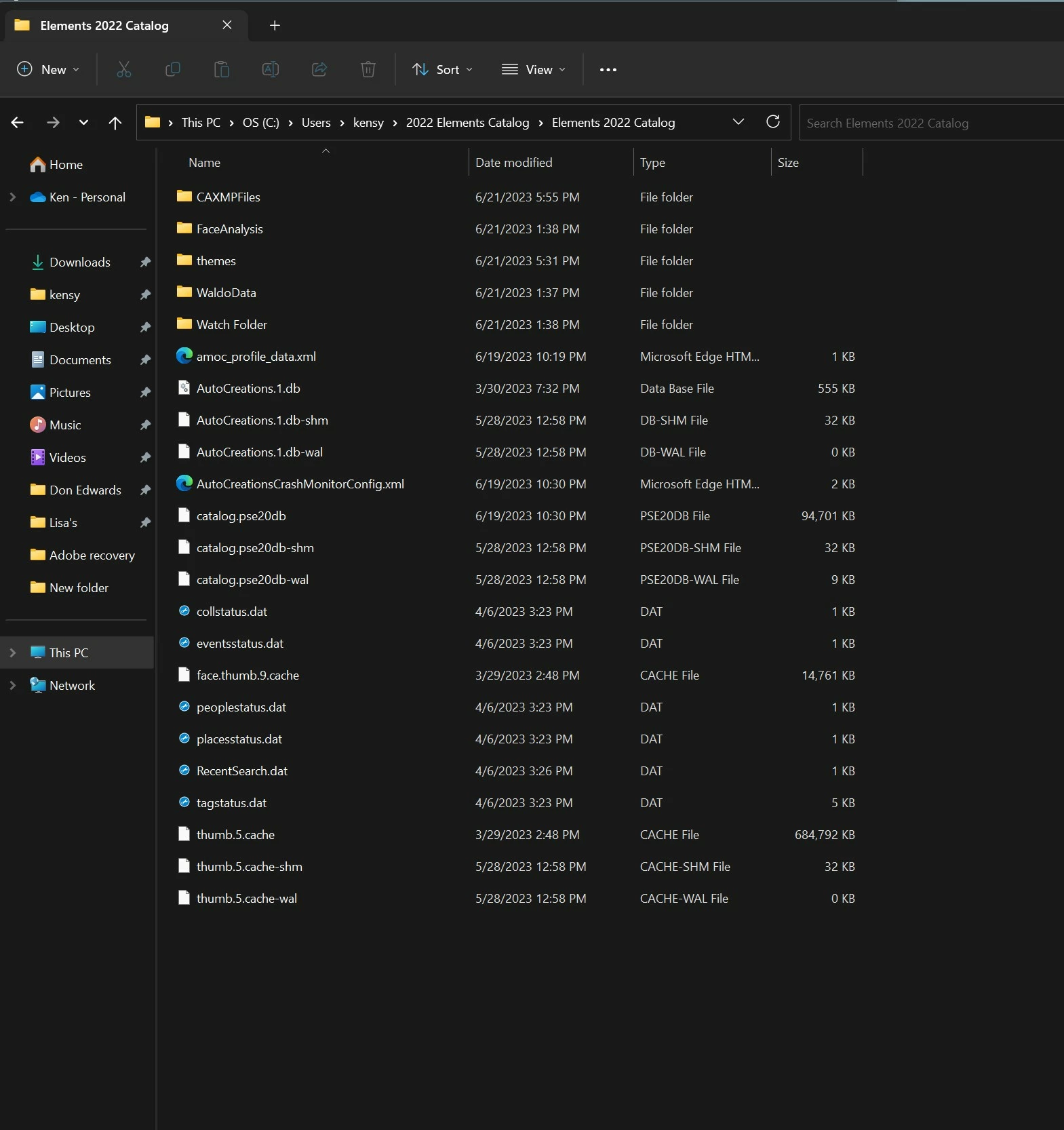 Regarding catalog.pse19db, please note that its date is 2/5/2022. Later that month I installed Elements 2022 and discovered that, for whatever reason, I had lost all of my photo tags. It was at that point that I decided to just go ahead and retag all the photos. The date on catalog.pse20db is 6/19/2023, shortly prior to when my computer bricked.