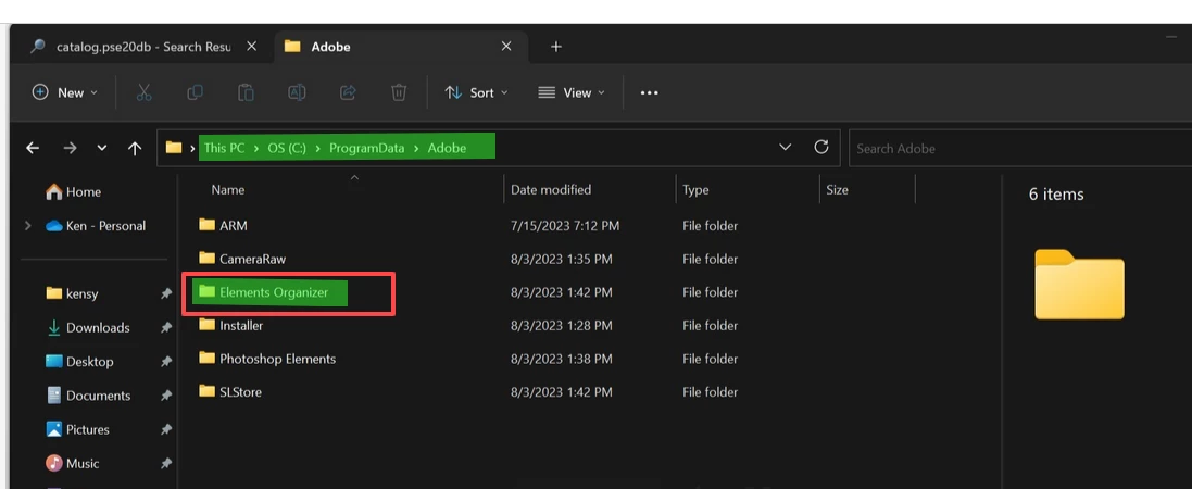 Also, I've attached #2 Adobe ProgramData Screenshot 2023-08-04 202954. Back on Aug 1, I mentioned that the Adobe ProgramData folder contained only the folder "ARM." #2 shows a series of folders created on Aug 3 when I double-clicked "catalog.pse20db." Would it be helpful to you to see the contents of these folders?