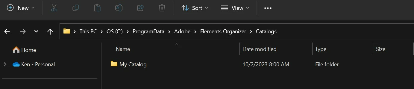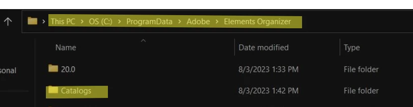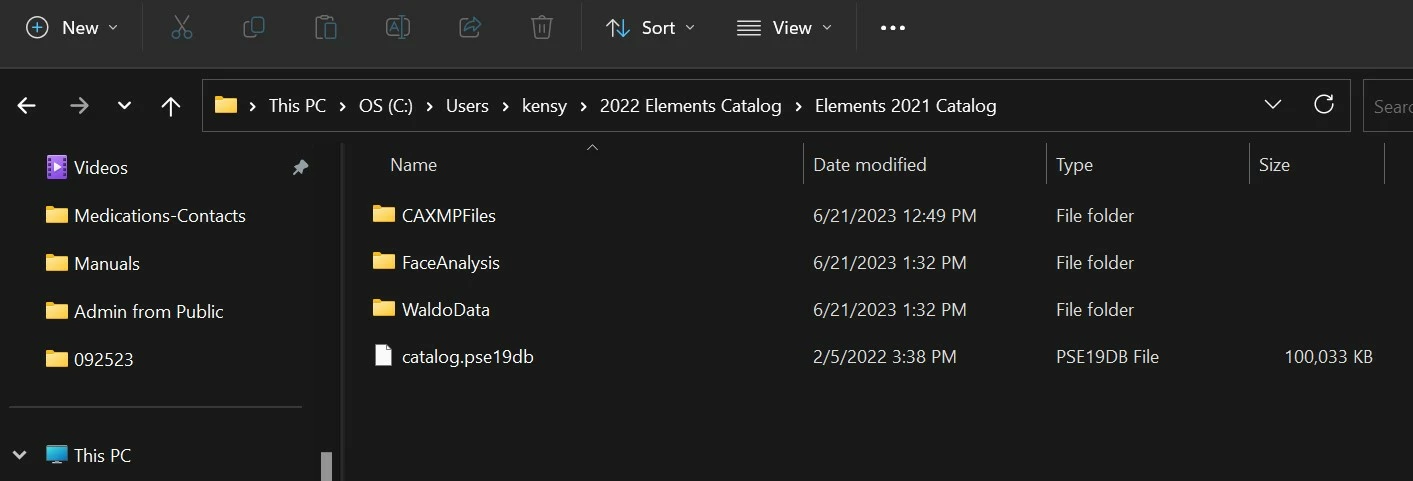 • The Elements 2022 Catalog folder is contained within a folder named 2022 Elements Catalog.  Again, something seems to have gone wrong with restoring folders from your backup files (or at least is causing confusion for me, if not for you).
