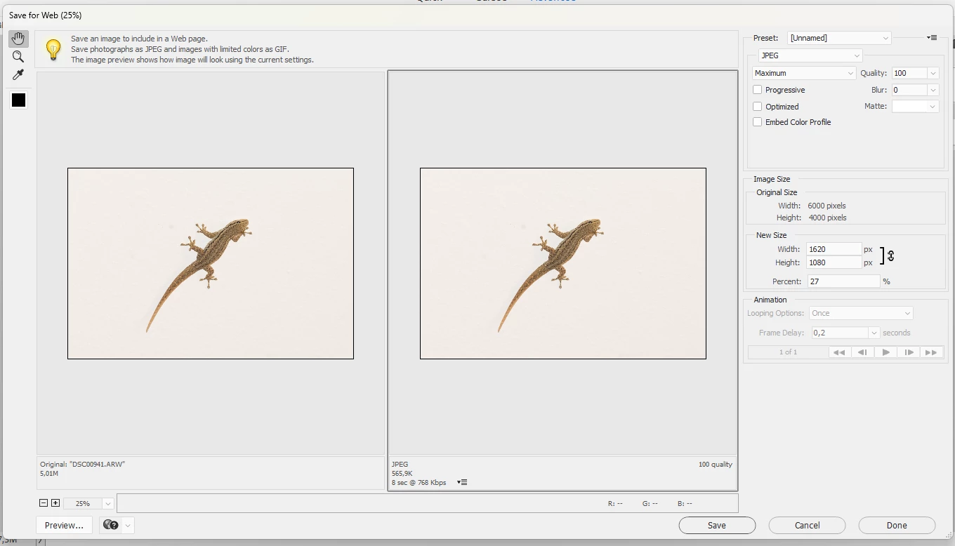 Hi, I use Ps Elements 2025 and we need to save images and submit in Jpeg format. If I save the image using the Save for Web function the jpeg image does not display the metadata.