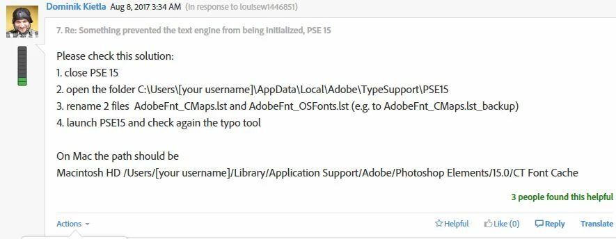 Selecting font in Photoshop Elements 15 leads to crash