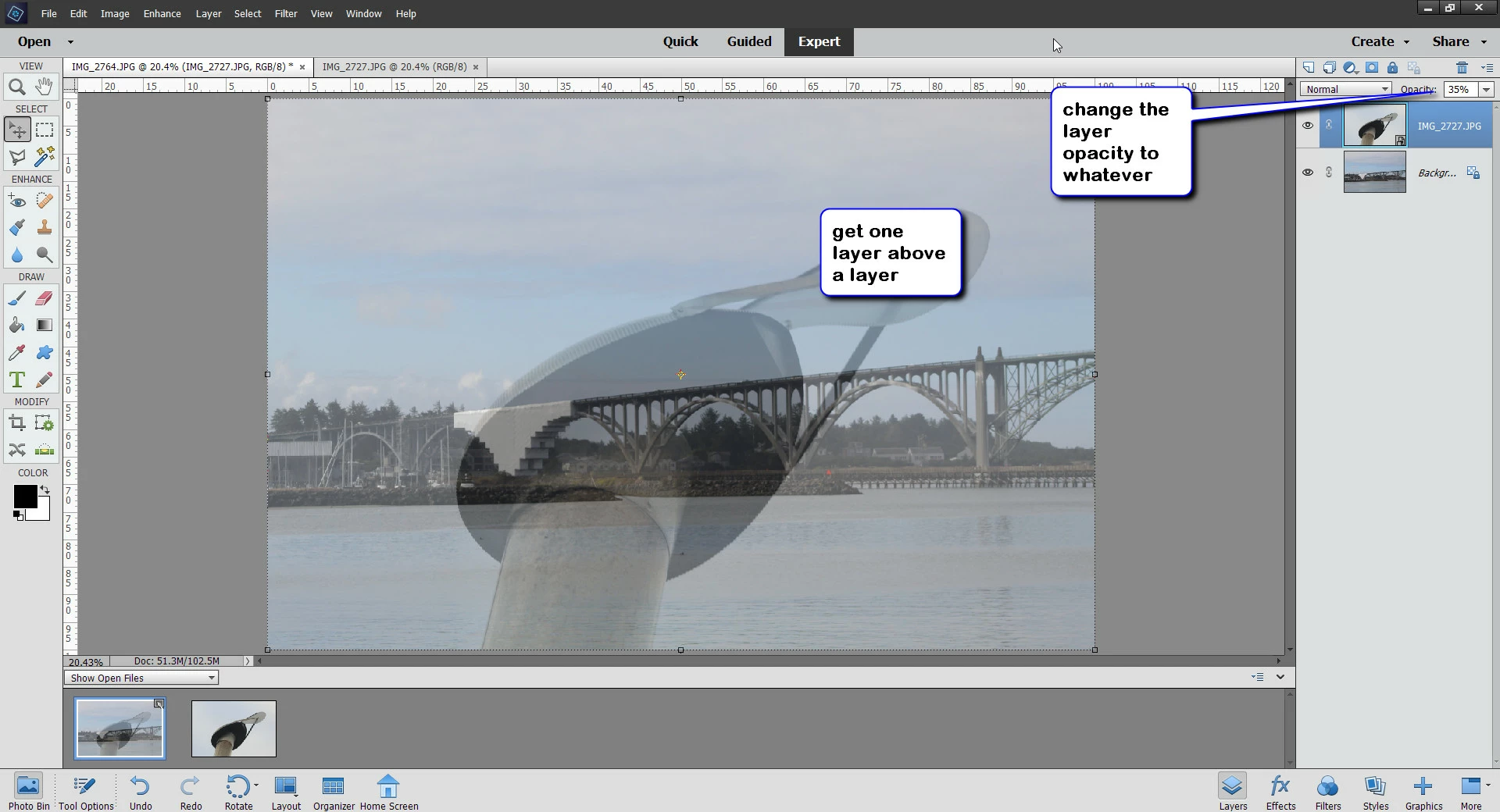 I need to know the steps to easily superimpose a semi transparent image over another image for the web Thanks