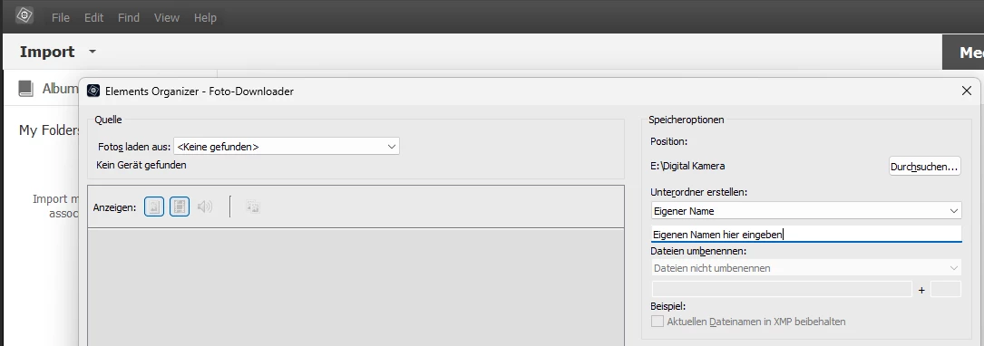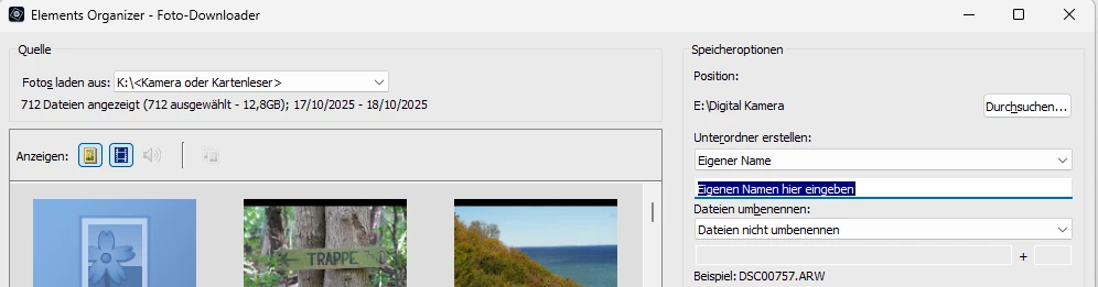 But when I use the importer in autorun, which opens when importing an SD card, everything there is in German.