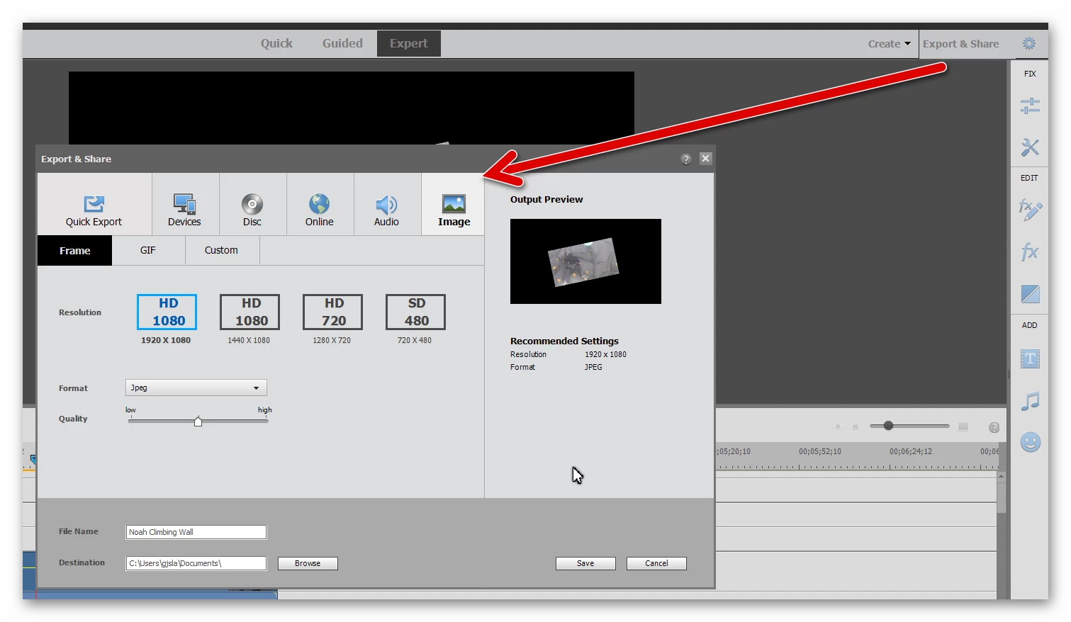 I am using Premire Elements 2019 and added a video file to my project. What I would like to do is (essentially) take a snapshot of one frame and save it to a jpeg file as a photo. The only available option I see is 'smart trim' but is not what I want to do. I have searched for this question but nothing relavent comes up. Please provide me with instructions on how to take a frame from a video clip and save it as a jpeg photo.