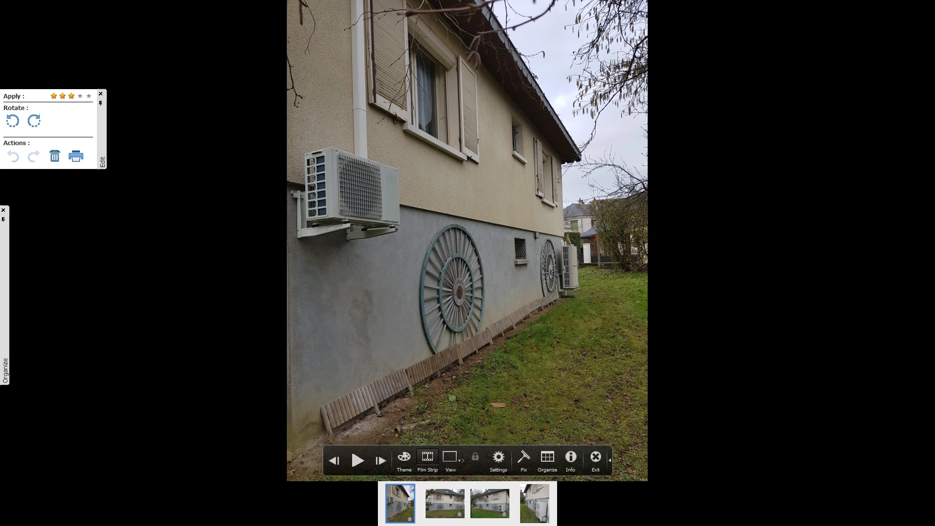 When you say "In the buttons bar, select the 'View' icon just right of 'Film Strip'.", where is that? In Organizer or the slideshow window? I don't have a film strip icon in Organizer. Just a Slideshow icon. To the right of that is the Home Screen icon. In Slideshow, there are no bottom icons. Just a few