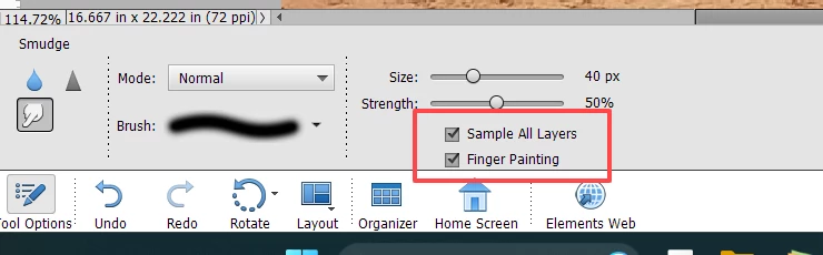 I'm trying to use the smudge tool on an image that doesn't have transparency around it, but wherever I click, it will leave color (whatever color is in the color box) and THEN it will drag the pizels like it should. But it keeps depositing colors that aren't anywhere near what I'm dragging, and say if my color box has pink in it and I click something to smudge it will leave pink and then as I drag it the pink will disappear and it will start dragging pixels.