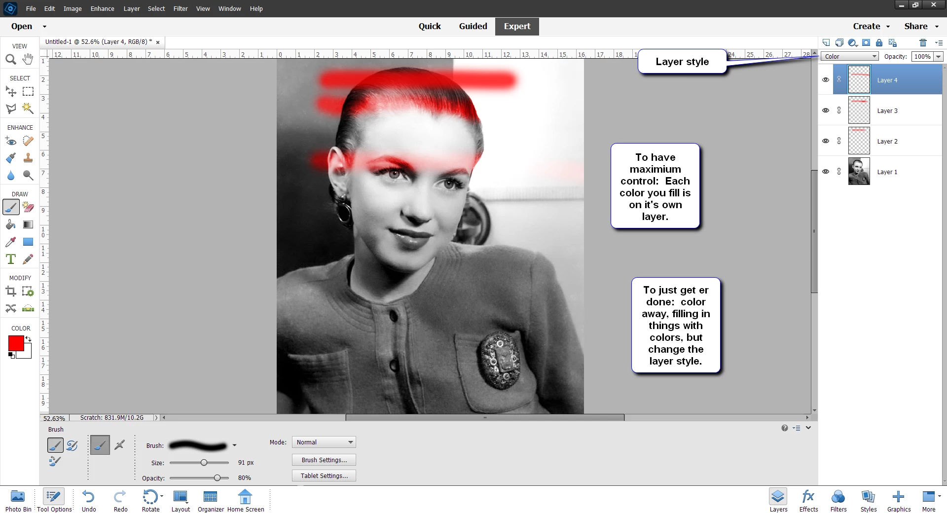 I'm using Photoshop Elements for Mac, version 2021.19. It's running on an Intel MacBook Pro on OS-X Monterray 12.4. I'm doing some line drawings and am coloring in some sections. But sometimes a color somehow becomes "dominant," and I can't brush over it with another color.