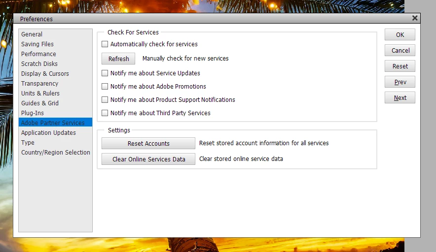 I've unchecked everything in Edit > Preferences > Adobe Partners Services. That does nothing to my problem.