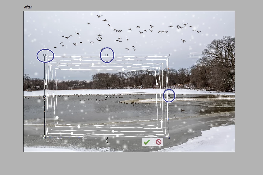 It is only possible to change the size of the Frame or Graphics overlays by adjusting the handles on the edges of the frame or graphic.