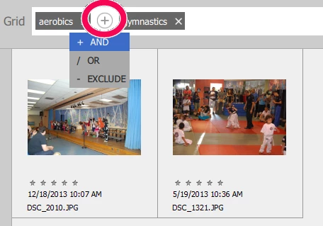 I have user created tags and want to search for Tag1 or Tag2 pictures. I'm looking for photos that have either tag (“or”) not both tags (“and”). How do I do that?