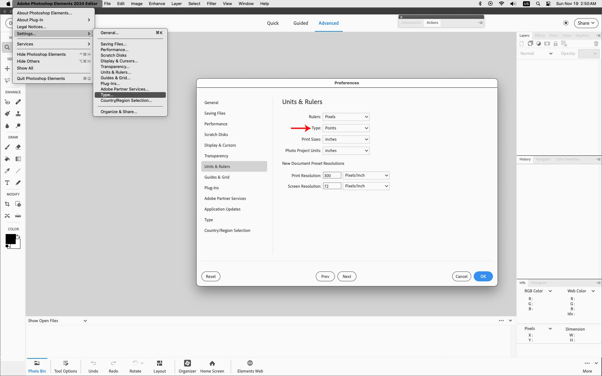 Test too small in Photoshop Elements 2024
