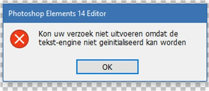 HELP suddenly my Photoshop Elements 14 doesnt work. It tells me that my text engine cannot initialized. 78/5000 In the help function they give four solutions that do not solve the problem.