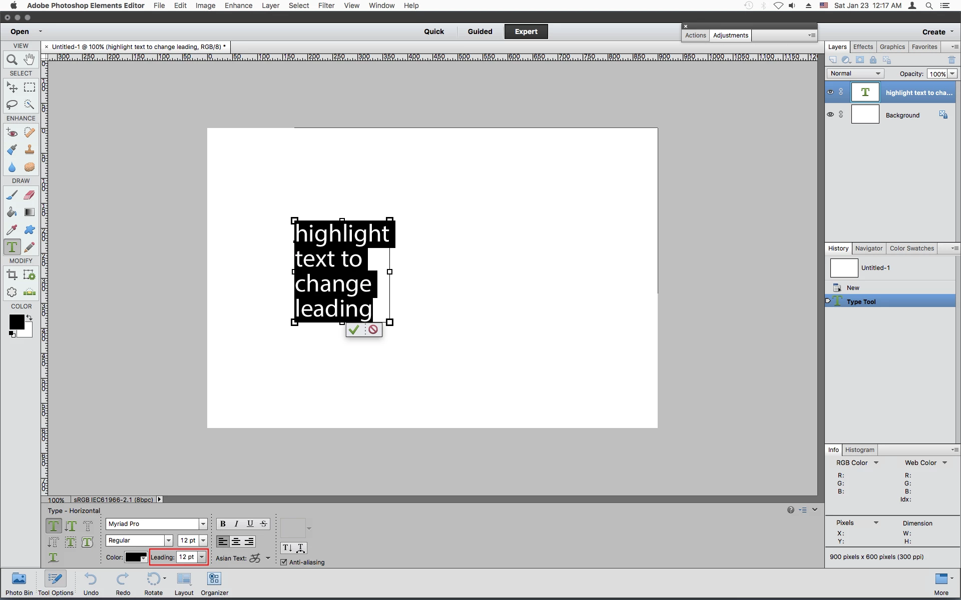I am using PSE 11. It has been a good fit for me, until I did something and I don't know what nor how to correct it. When I am typing text, the leading is way off - and I cannot change it to be correct. Even if I have it set at .01, I could easily fit three more lines of text in between the two I've typed. Can anyone tell me how to fix this - in easy terms for a neophyte? A screen shot is in the attached document. Thank you!