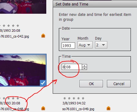 the "Time" window shows the time in 12 hour (am/pm) format (e.g. "8:08", but without the am/pm designation). My system is set up for a 24 hour time display ("20.08" not "8:08 pm") and this is what is shown on the regular grid display, below each picture. In the Set Date and Time window, however, If I try to increase or decrease the hour element of the time ("8" in the above example) a pm time will decrease through two 12 hour cycles, but a number above 12 cannot be entered.There is no way to distinguish between 8 am and 8 pm.