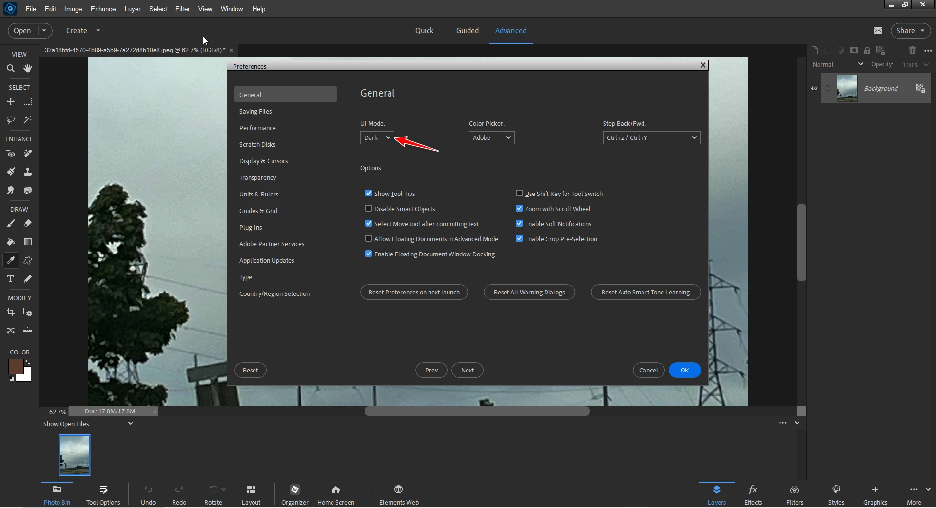 PS Elements 2024 not displaying background color when display preferences set to Automatic
