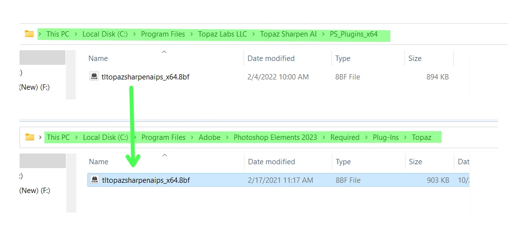 I just upgraded from 2018 to 2023 Elements. My Topaz Sharpen and DeNoise AI are not showing up as available plugins. Still available in my 2018 but not showing as available in 2023. Is there something I need to do to try and make them available? Using Win 10.