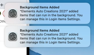 How do I turn off Elements Auto Creation 2021 (for the Mac)? I don't want this running in the background and constantly sending pop up messages on my screen. I've seen some instructions for the PC version, but it doesn't seem to match options on the Mac.