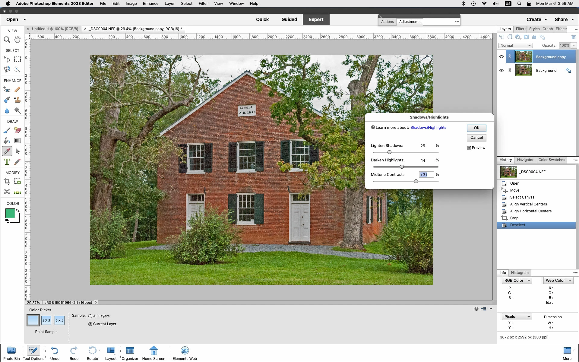 Überarbeiten>Beleuchtung anpassen>Tiefen/Lichter reagiert nicht oder sehr träge