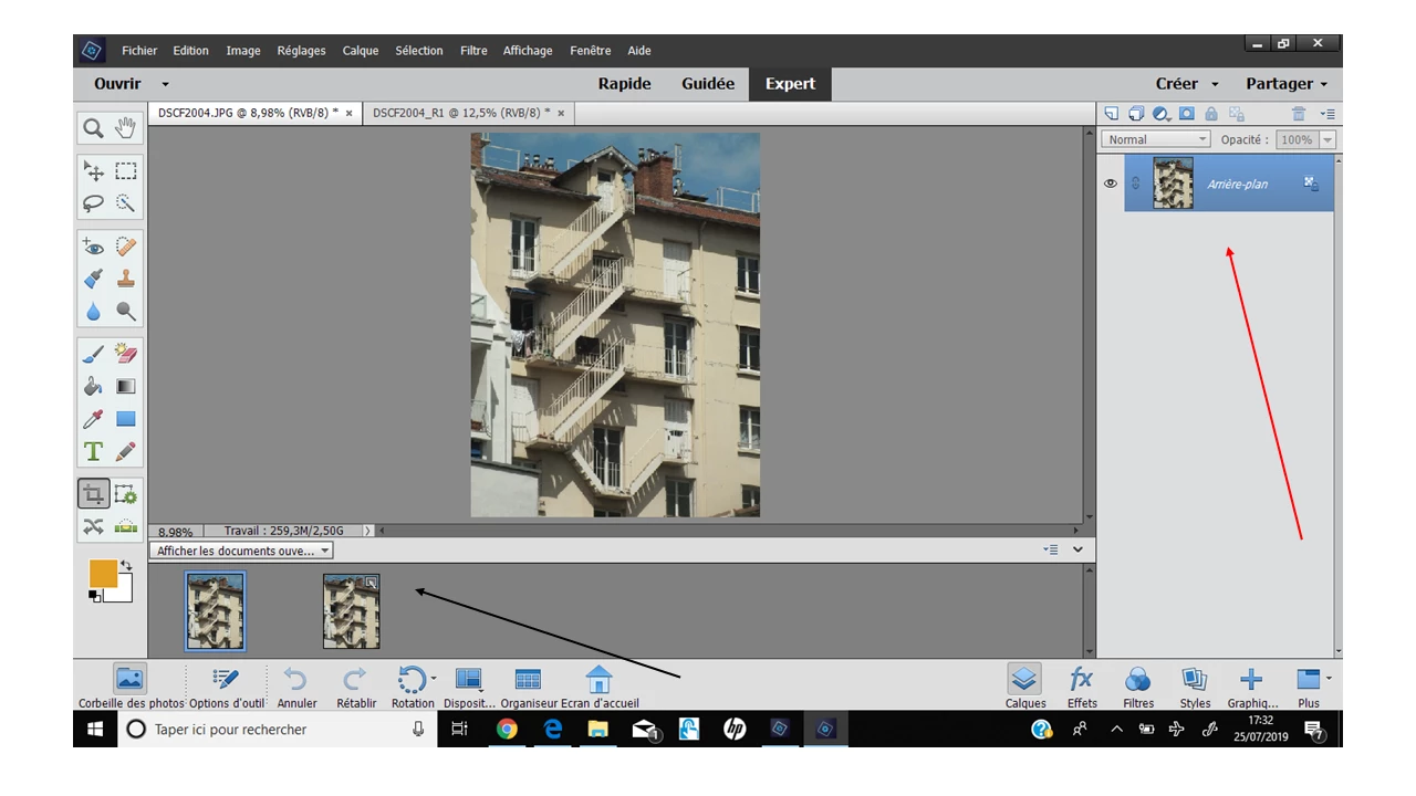 When I use Photosphop Elements in "Expert" mode, I can generate multiple "tracing papers" ("calques" in French). Each of them is dispalyed as a separate Tab above the work section, but they don't appear as a stack in the right portion of the screen as they used to.