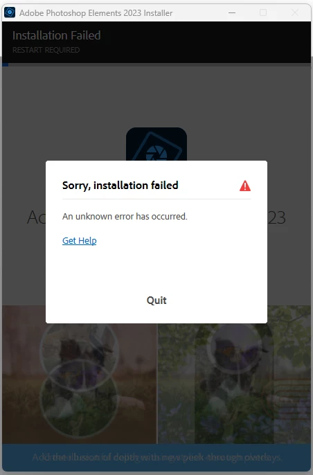 Unknown error installing Photoshop Elements 2023 on Windows 11