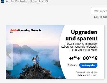 Upgrade Angebot bei Elements 2024 von 80,99€ wird dann bei PayPal mit 98,98€ berechnet