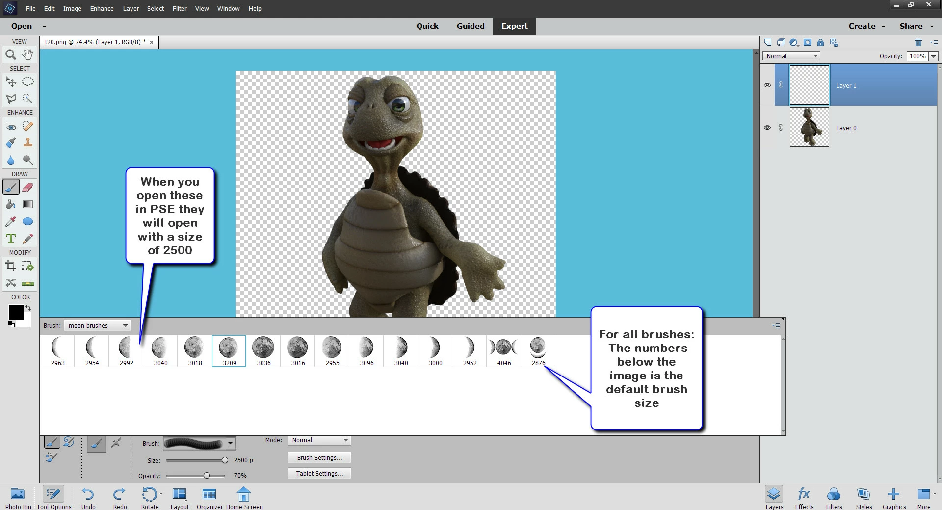 NOTE:  The max size of a brush in photoshop is 5000 x 5000, in PSE it's only 2500 x 2500.  Many PS brushes are larger than 2500 x 2500- don't worry about it.