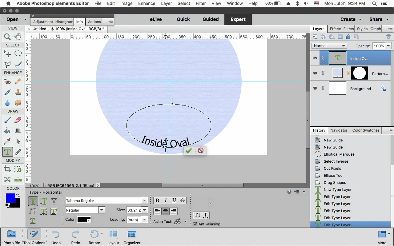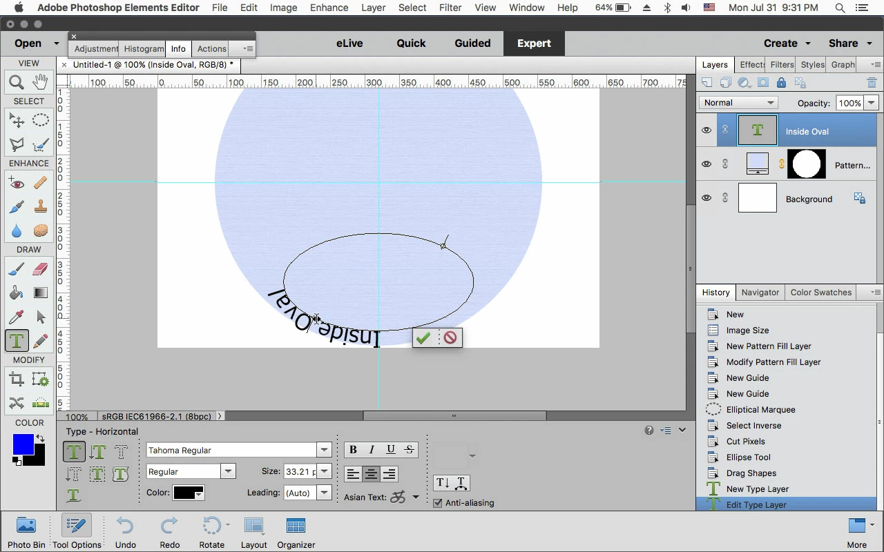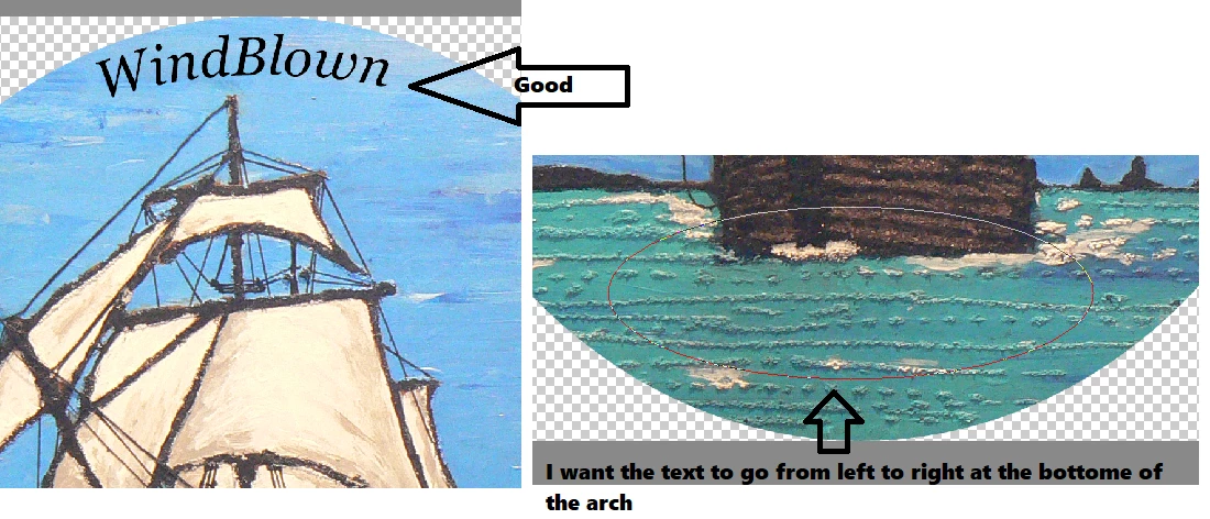 I am stuck with using the text shape tool...I did alright with the top of my picture but I want the text to run the other way at the bottom - to follow the bottom of the oval rather than the top...is there a way of achieving this?