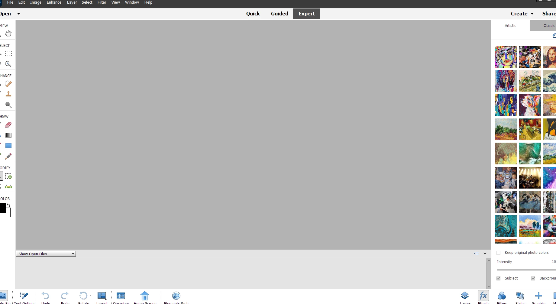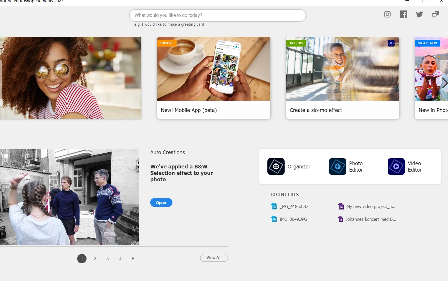 toshop elemens) but to open Elements without welcomescreen I want to close it, and at once go to the optimiceside. Above I show the side/screen as I not want to se, but instead this: