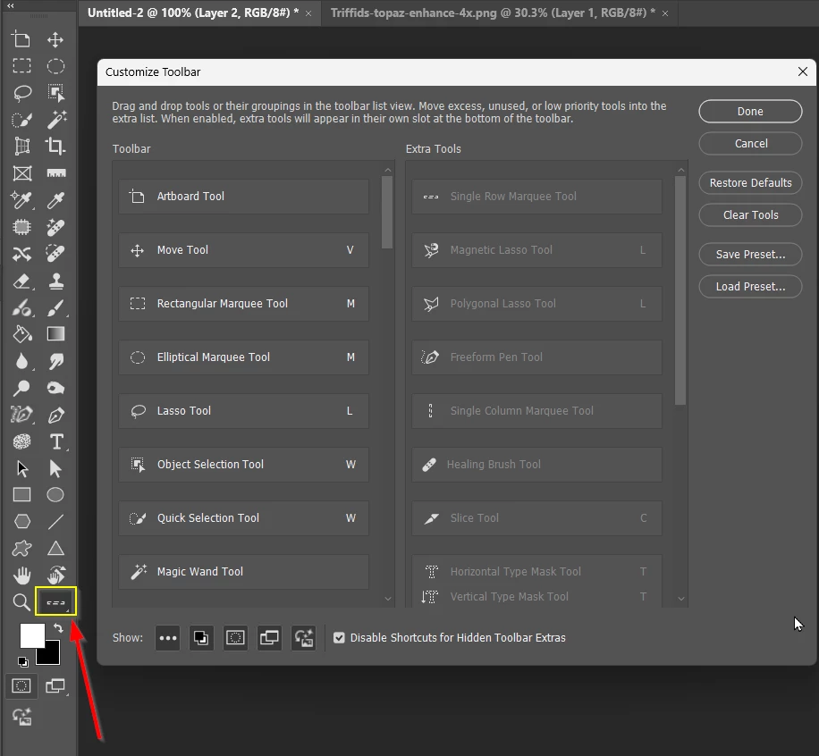 Lassen sich unter „Erweitert“ die Werkzeuge nach eigenen Wünschen verschieben?
