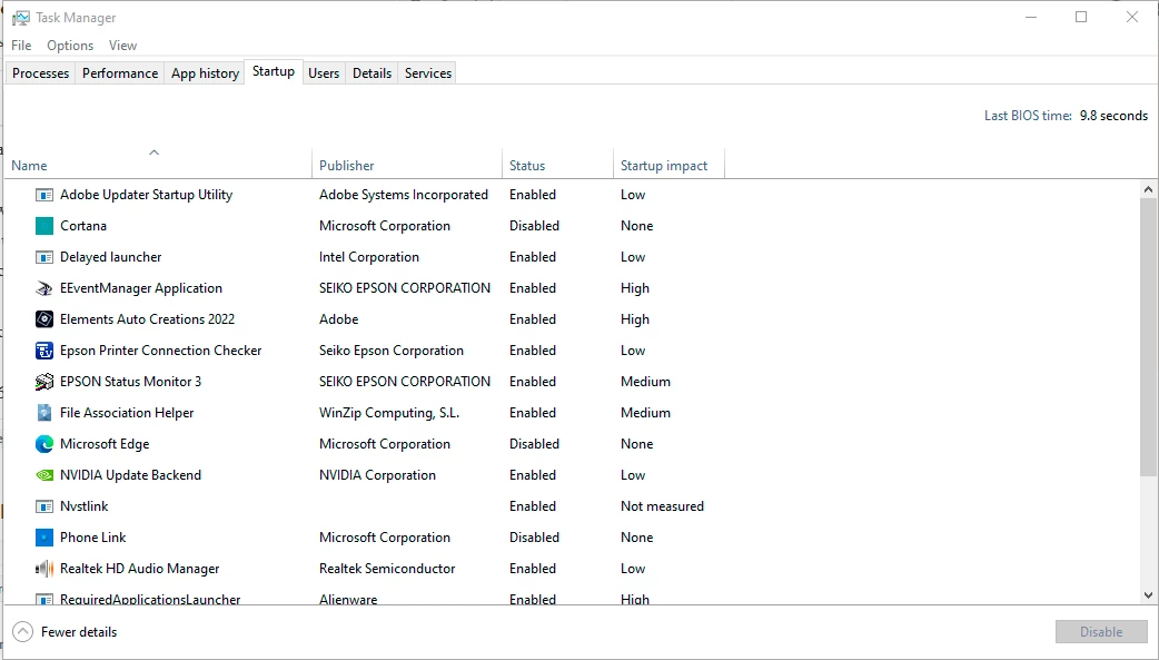 2. Under Task Manager's Processes tab, I see Adobe Update Service (32 bit), which has very low power usage. Does this process run automatically at startup? Again, I want to minimize unnecessary processes and have agency over when and how I use them.