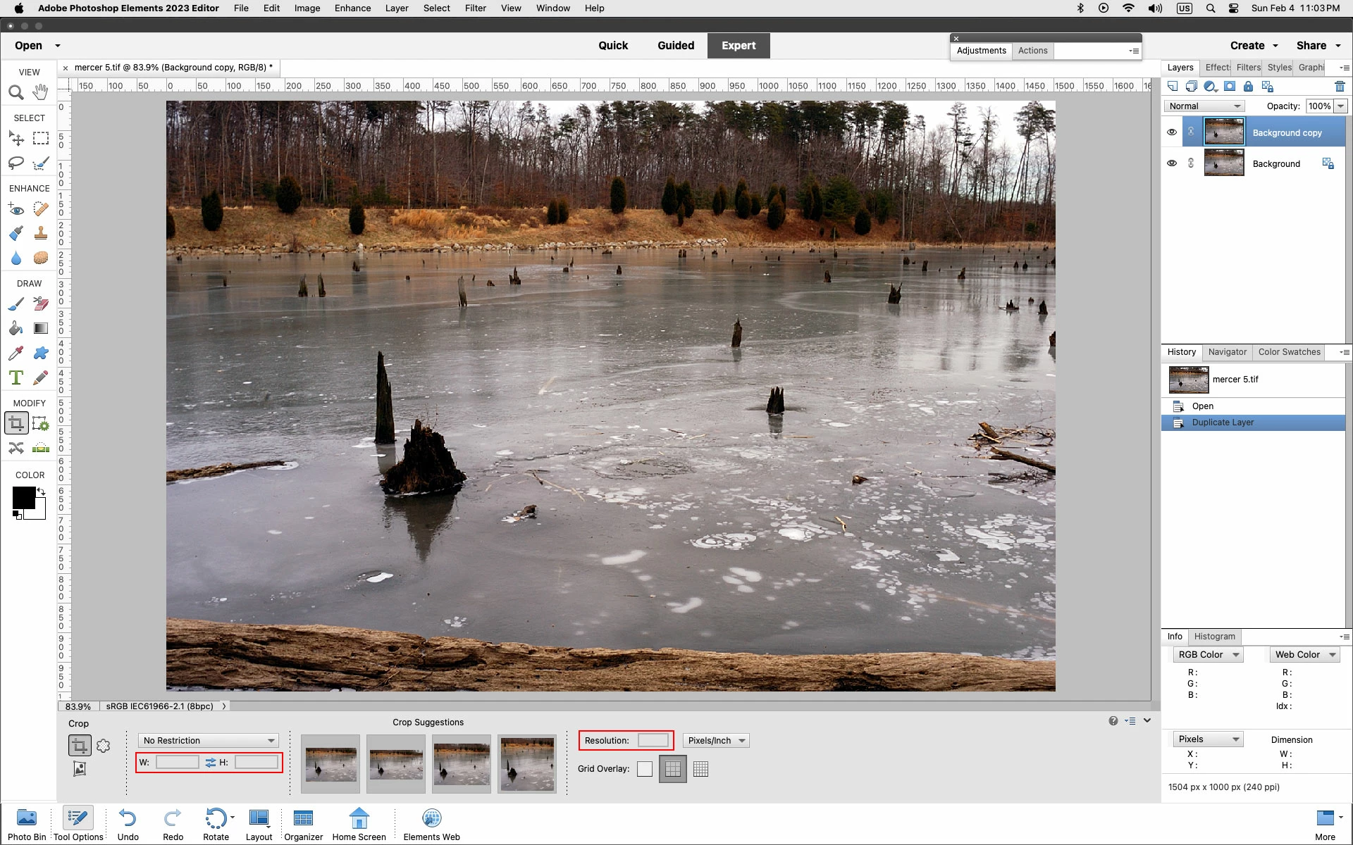 When I crop an image in Elements 2023 it turns out to be very tiny thumbnail HELP