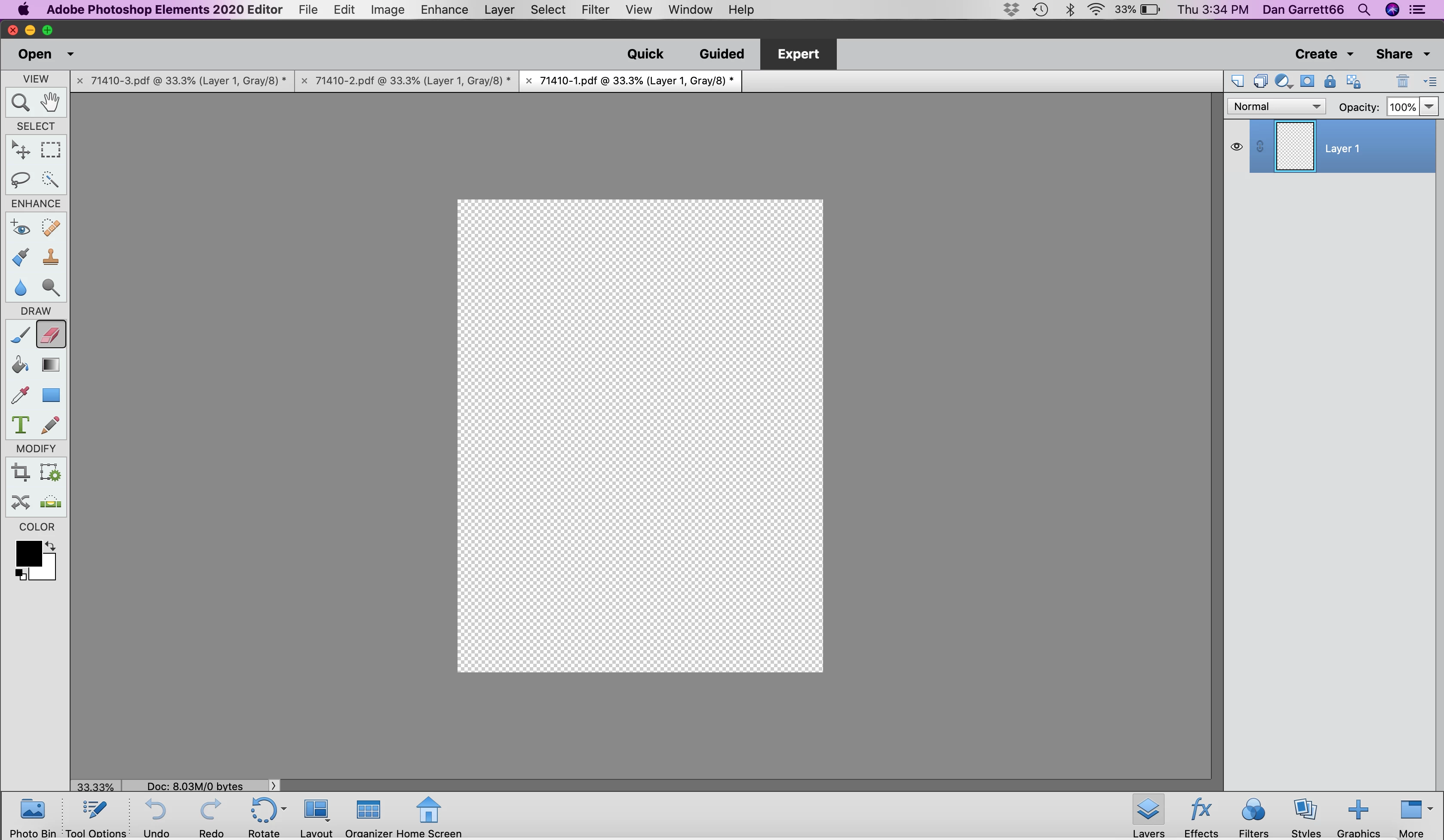 I have Elements 2020 and use a MacBook Pro.  Intermittently when I load PDFs into photo editing none of the layers are visible.  Occasionally if I restart my computer it will resolve.  Thoughts?  I've attached a screen shot of what I see.