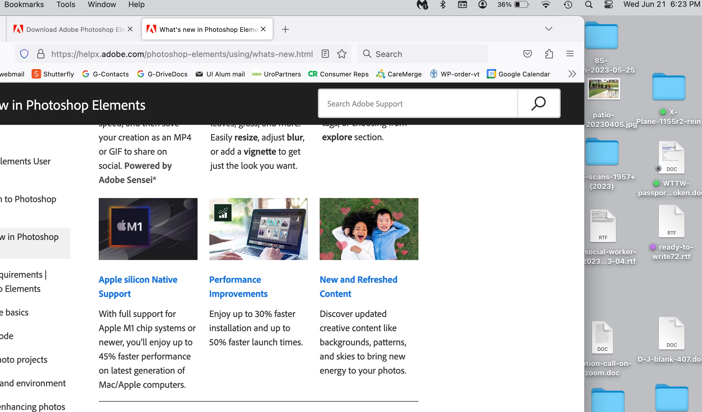 I had high hopes for PhotoShop Elements 2023 for my new Mac M2max. The trial download went well, but Apple OS 13.4 wanted to invoke Rosetta to translate and run it. Translators and emulators eat storage, run apps slower, and are prone to premature non-support. I de-installed it immediately. The 6/21/2023 screen shot boasting M1+ performance seems highly misleading, "full support" (yep, I grant, that's not native, but still...). Somewhere in Adobe's pages and these forums, I found an October 2022 post assuring it would be "native." When, 2/32/2032? What gives?
