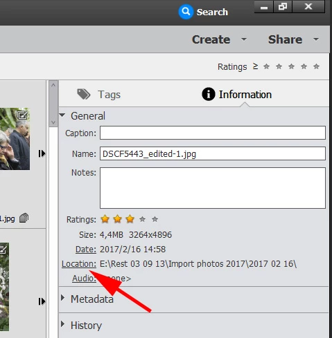 - Or your photos have been put somewhere on your drive by any other way: download from the explorer/finder, by the camera software, by import from Internet or copy from a thumbrive etc. Then only YOU knows where those picture files have been imported. The catalog will show you the location in the information panel.