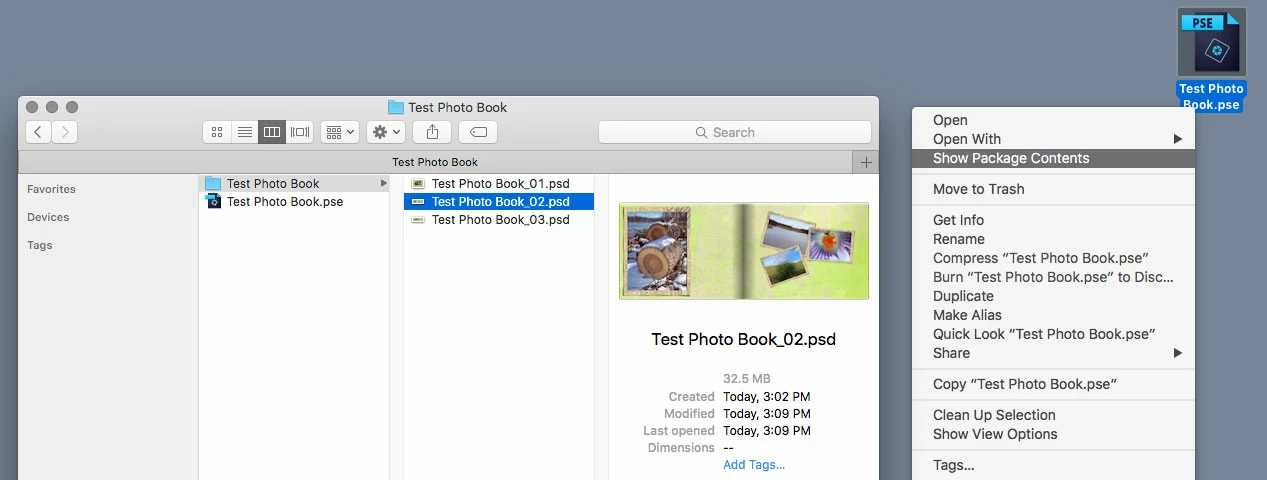 Where are PSE-2018 photo book pages stored on a Mac?