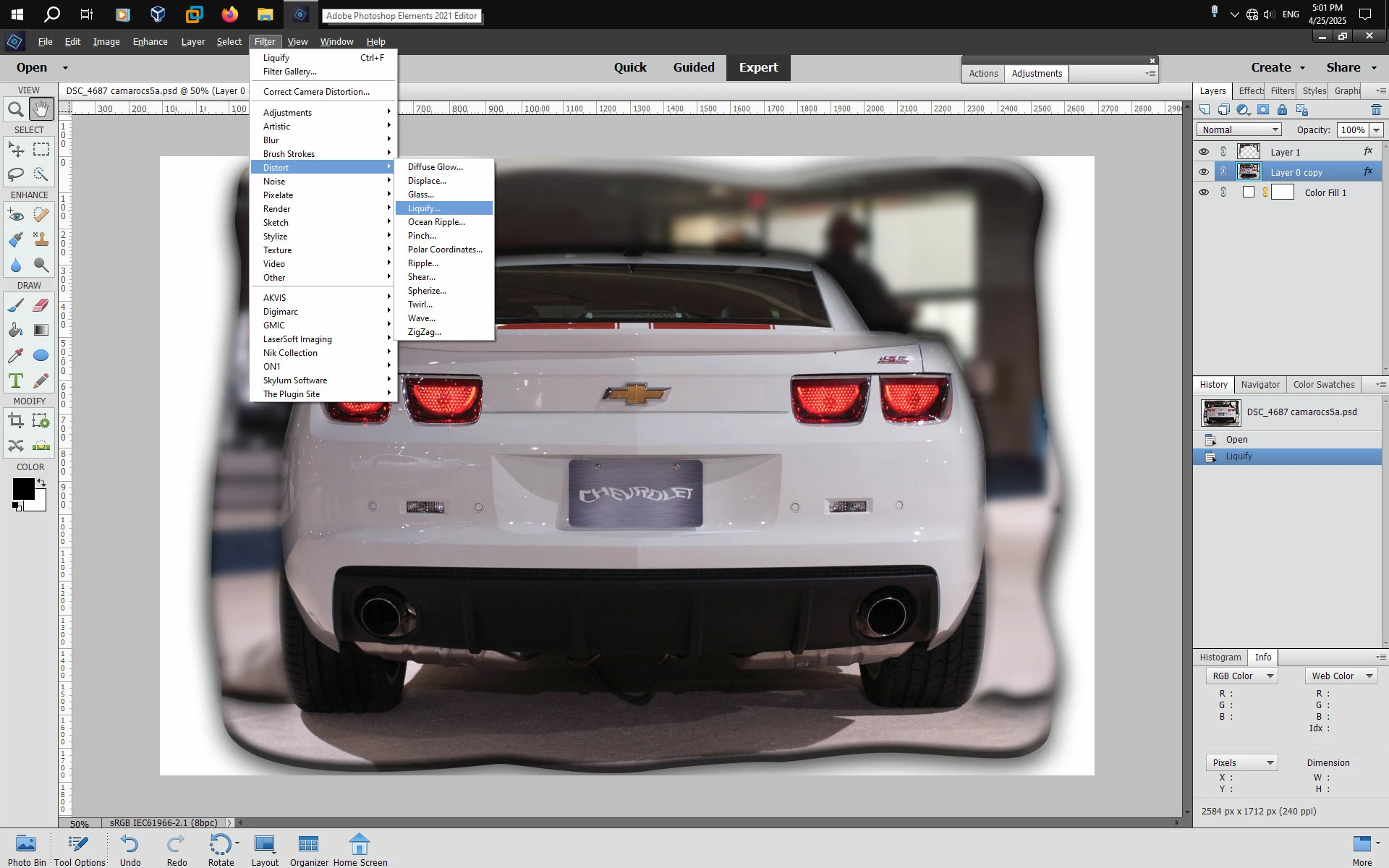 I wanted to use Liquefy in PS Elements 2021. But all of the searches that tell me where it is in PS, its not there. For example Filter/Distort/liquefy its not there.