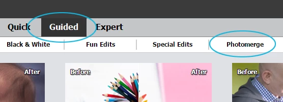 I am using Photoshop Elements 2020. Recently, I've been trying to do a project where you merge two images together, so I looked for Photomerge. Unfortunately, I couldn't find it anywhere, and not many posts on this forum helped me resolve this problem. I tried: