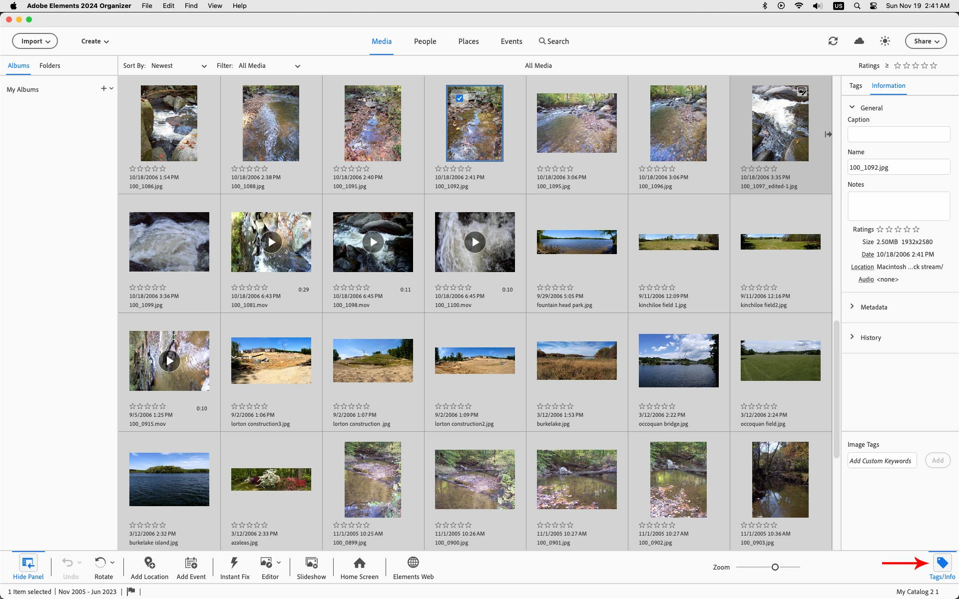 I just got the PE 2024. In my old version, 2021, there was a panel on the right that gave information on file name, date of creation, pixel size, mb's and a few other things. I can not find this information in PE 2024. What do I click on to get it? I really do need the meta data for each image.