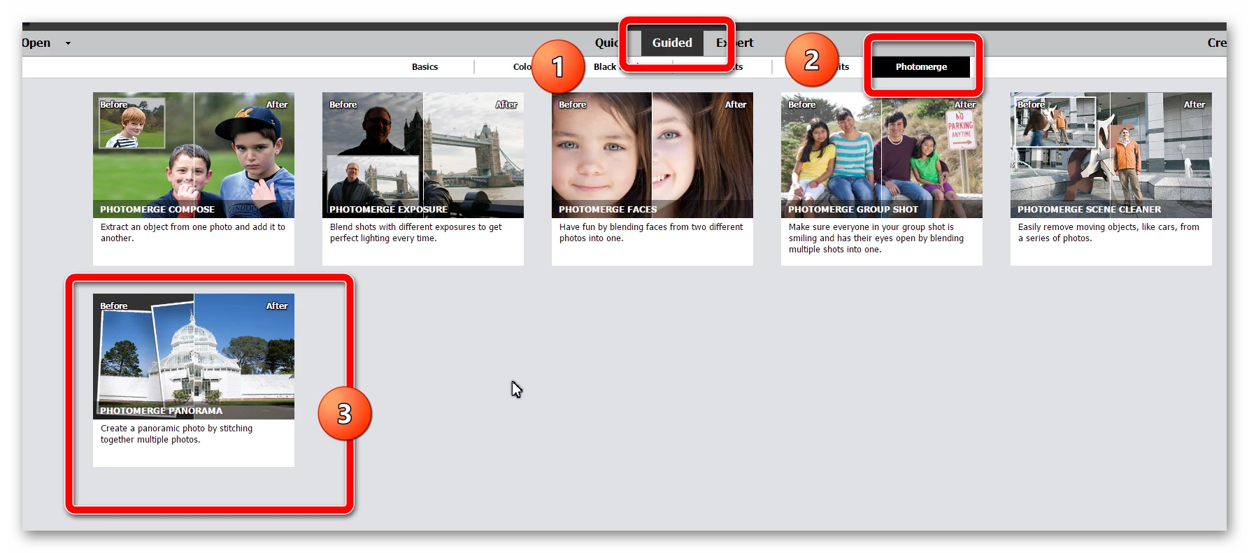 wie kann ich mit Photoshop Elements 2020 ein Panorama erstellen