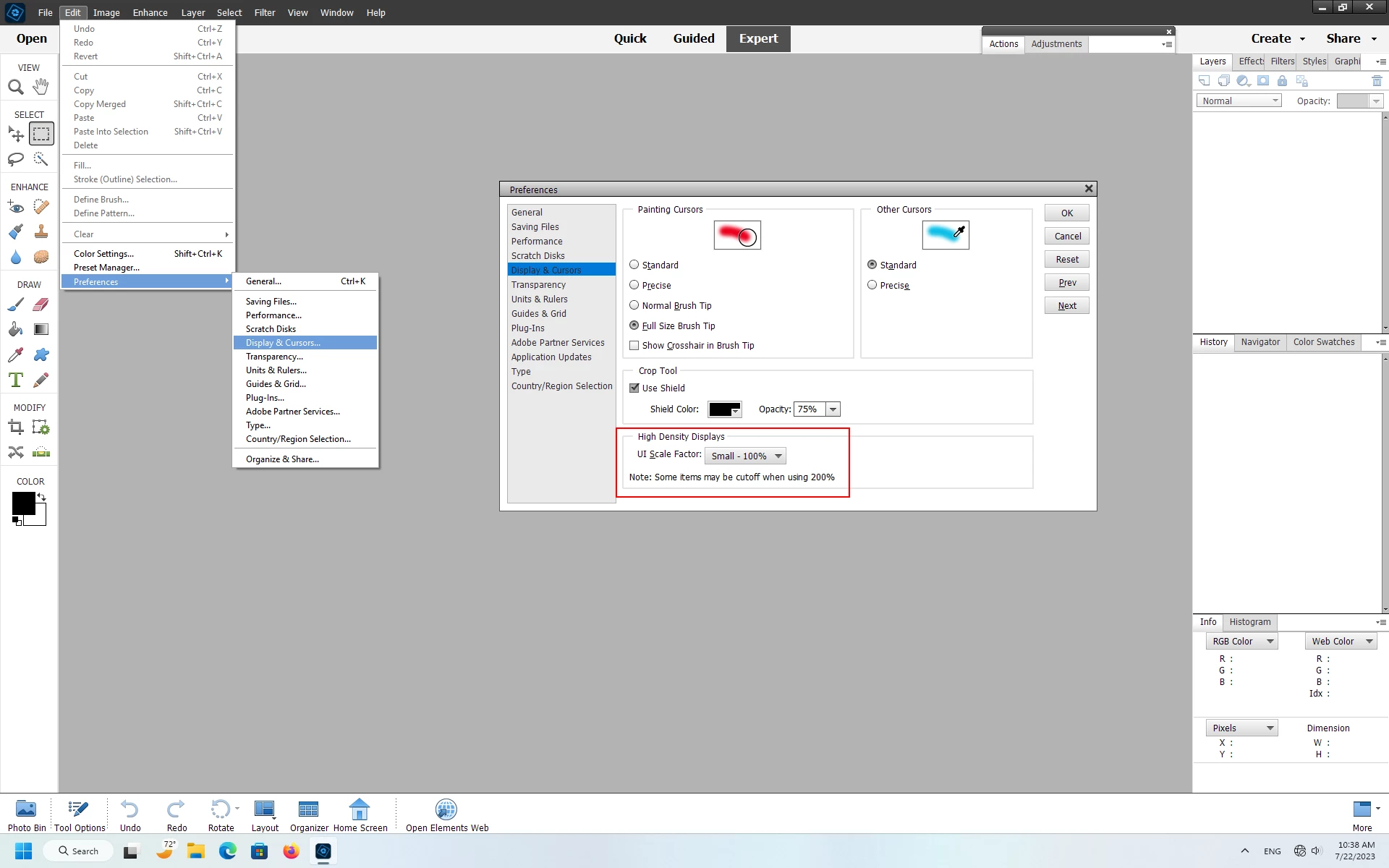 Yes in the pse editor go to Edit>Preferences>Display & Cursors, set the UI Scale Factor to Small-100% and restart the pse editor.