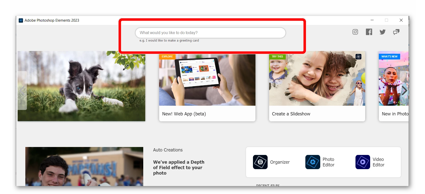 I recently bought Photoshop Elements 2023. Struggling to learn it I use Adobe´s help functions and Youtube tutorials. When opening up Elements I find menus and symbols partly different from those described i Adobe´s and Youtube´s tutorials. For example, up to the right there is no magnifying glass and no search bar where I could find the discovery panel. At the moment I am trying to remove the background of my photo. Here is a screen print: