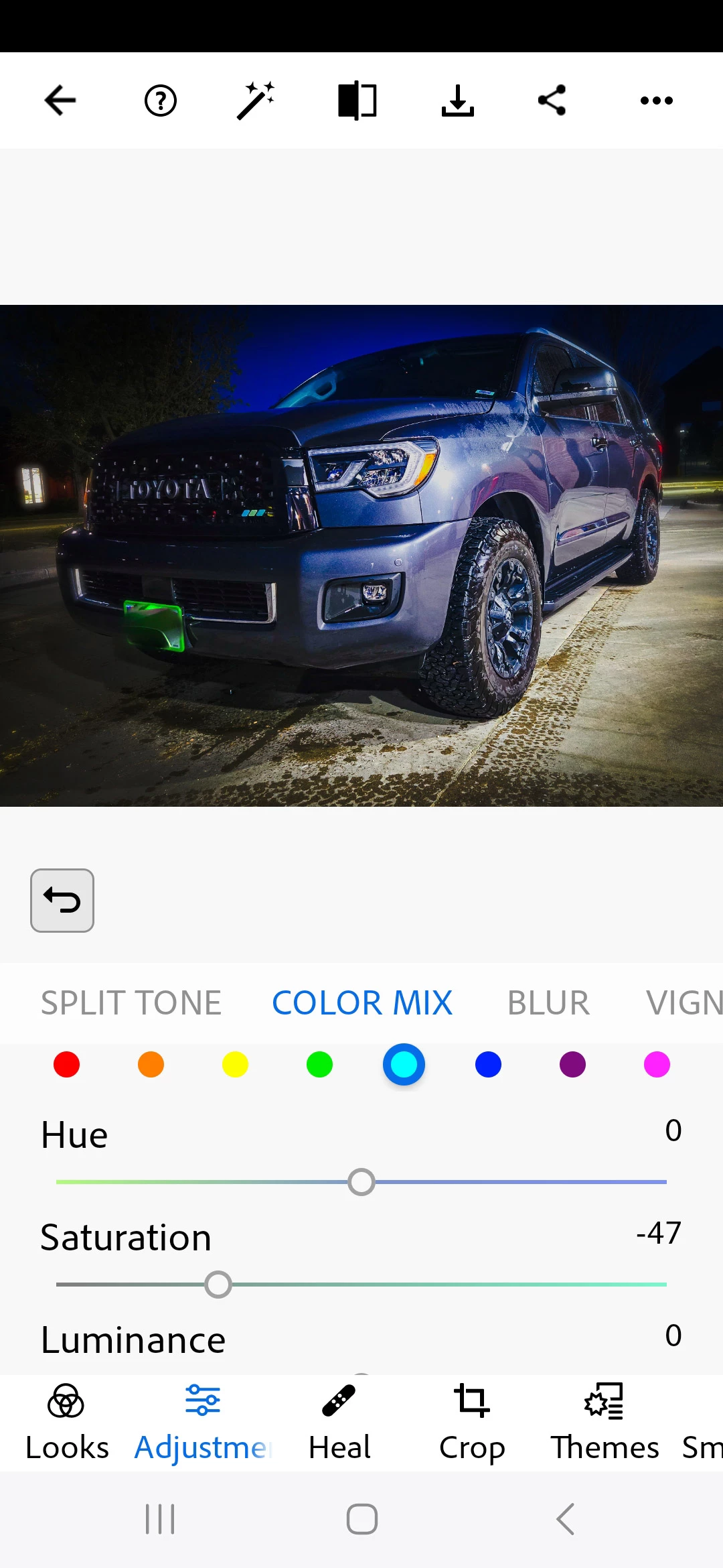 Unable to access luminance tools in Android Photoshop Express app. No way to scroll up.