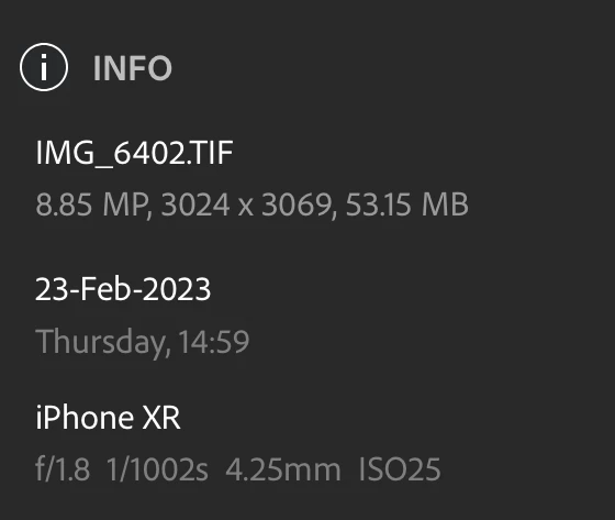 I clicked the three dots in the upper right and chose "Show Info". It is still a TIFF.